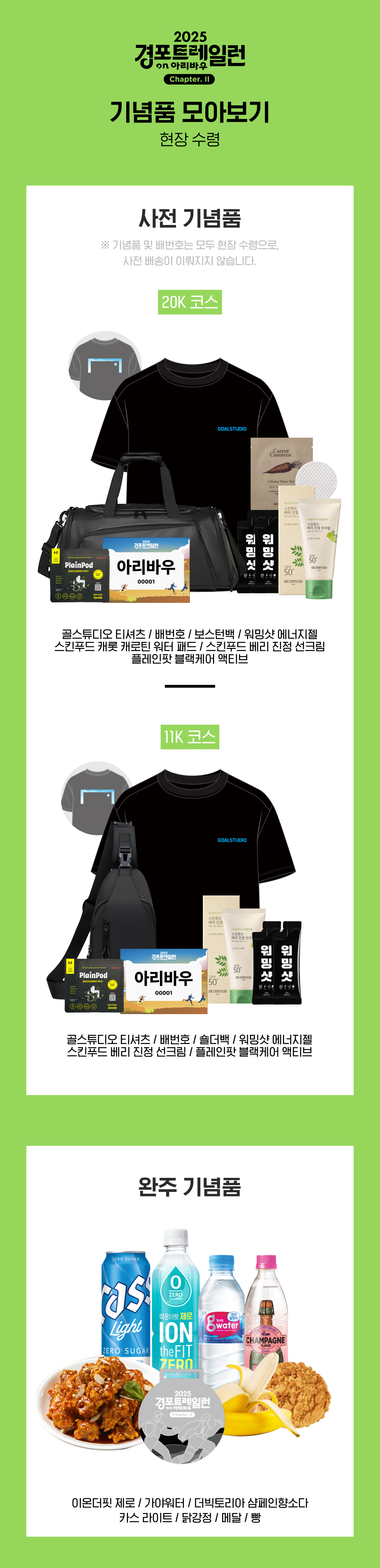 아리바우 경포 트레일런 참가 기념품은 대회 당일 현장에서 배부합니다